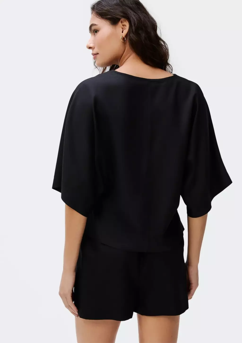 Blusa feminina em tecido plano leve de viscose, com decote em "V" que adiciona delicadeza à peça. Apresenta modelagem solta, oferecendo conforto e fluidez, e detalhe lateral com abertura, conferindo um toque moderno e sofisticado. Ideal para looks casuais e elegantes, com leveza e estilo para o dia a dia.