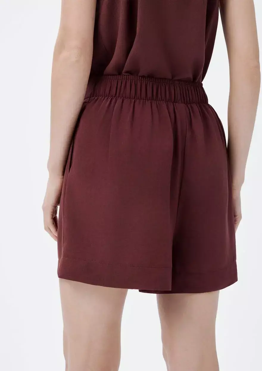 Shorts feminino cintura alta elaborado em tecido de viscose e linho que garante toque suave e ótimo caimento. Com shape soltinho e design refinado, é perfeito para um look casual chique.