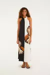 vestido longo estampado amonita. possui decote halter valorizando os ombros com leveza e fluidez. alças delicadas elevam o charme da peça. confeccionado em tecido leve e confortável, é perfeito para dias casuais ou um passeio ao ar livre. um toque original que se destaca em qualquer ocasião.